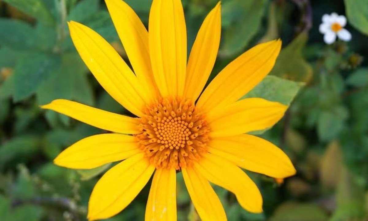 Originária do México, América Central e Caribe, esta planta robusta se adaptou bem a diversas regiões do mundo. Atingindo de 1,5 m a 4 m de altura, apresenta hastes lenhosas e folhas grandes e recortadas. Suas flores, de um amarelo-vibrante e semelhantes a margaridas ou pequenos girassóis, florescem abundantemente, atraindo abelhas e outros polinizadores.