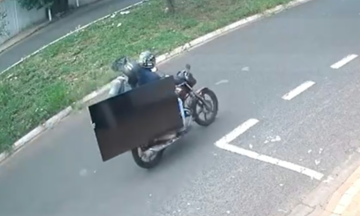 MG: dupla furta TV e foge em moto em plena luz do dia; veja vídeo