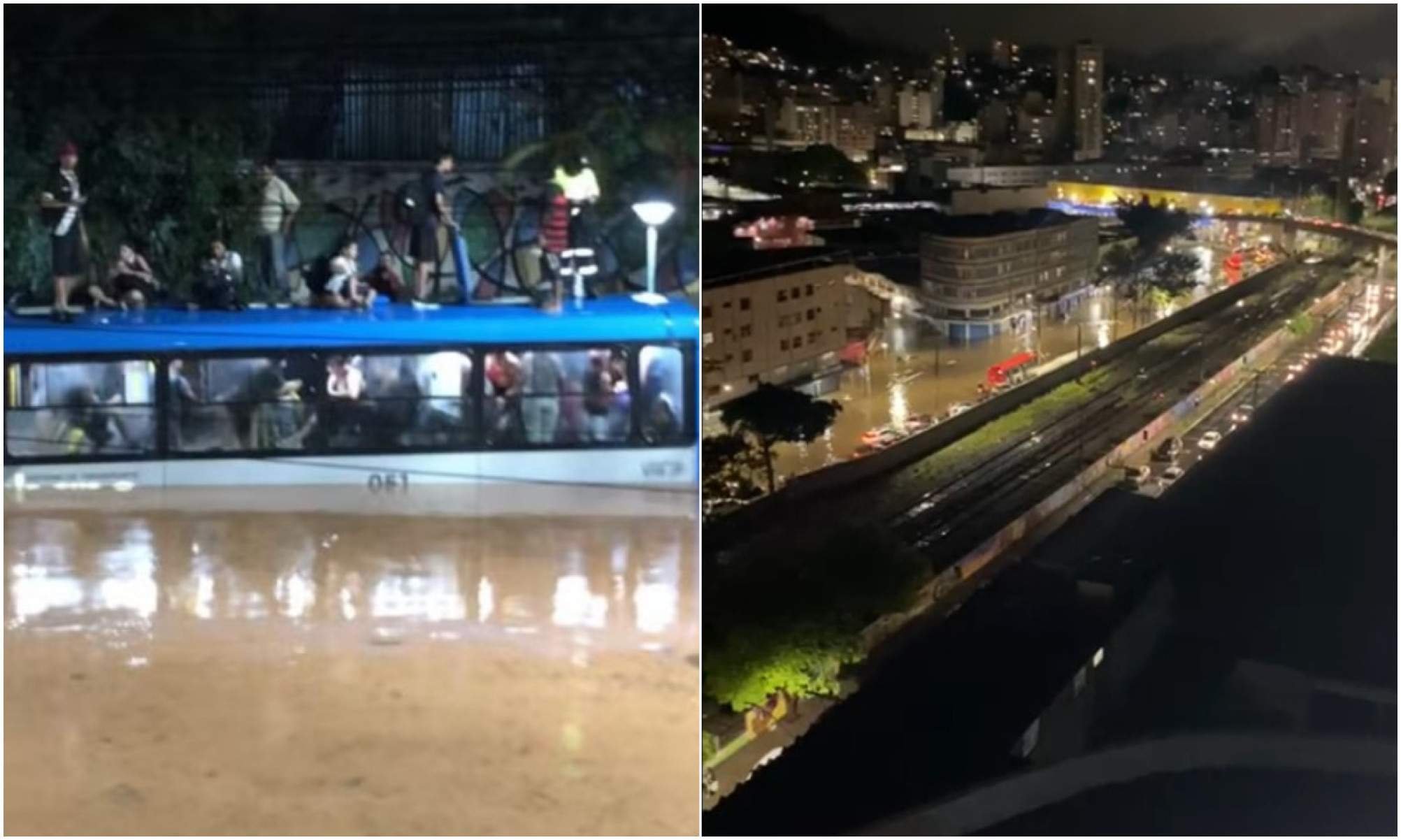 No Mergulhão, localizado na Avenida Rio Branco, a maior da cidade, alguns ônibus do transporte coletivo urbano ficaram ilhados. Imagens que circulam nas redes sociais mostram a água dentro do veículo e alguns passageiros no teto do coletivo.